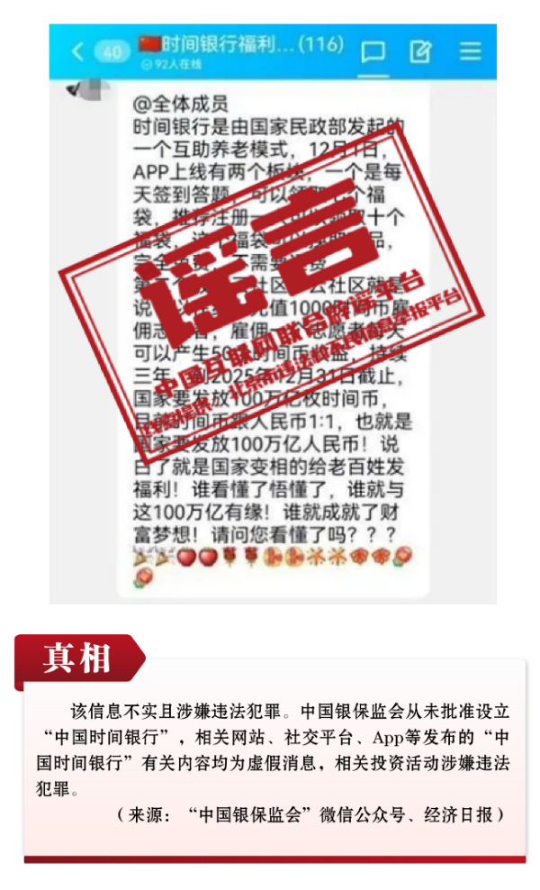 杜撰政策意欲行骗。4月以来,有不法分子歪曲解读政策,甚至假冒国家机关、伪造政策文件,企图行骗牟利。比如,利用“加快建设全国统一大市场”这一重要部署,编造“国家发改委‘招聘全国统一大市场优秀宣传员’”谣言,诱导读者办理所谓“统一建设卡”,进而达到敛财目的;杜撰“‘农管’来了,农民要‘持证下田’”虚假信息,歪曲农业综合行政执法队伍打击侵农害农违法行为的职责,混淆视听,意图骗取所谓“从业许可证”的培训费;虚构“中国时间银行”及其“将要上市”消息,企图以“养老公益项目”之名,行“庞氏骗局”之实,这类谣言涉嫌传销和集资诈骗。